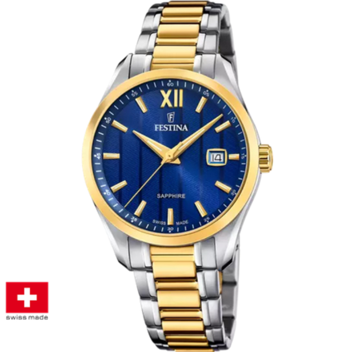Дамски ръчен часовник с кварцов механизъм - корпус от Стомана - Стоманена верижка - цвят Син Злато